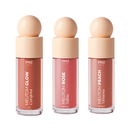Combo 1 Meutom Glow Corajosa - Gloss Labial + 1 Meutom Rose Sábia (Batom líquido, sombra e Blush) + 1 Meutom Peach Virtuosa (Batom líquido, sombra e Blush)