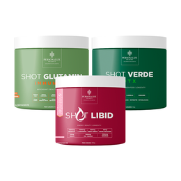 Combo Vida Abundante - Shot Glutamin Immunity (Sabor Melancia), Shot Verde Detox, Shot Libid, Shot Sono Inteligente - 150g por pote